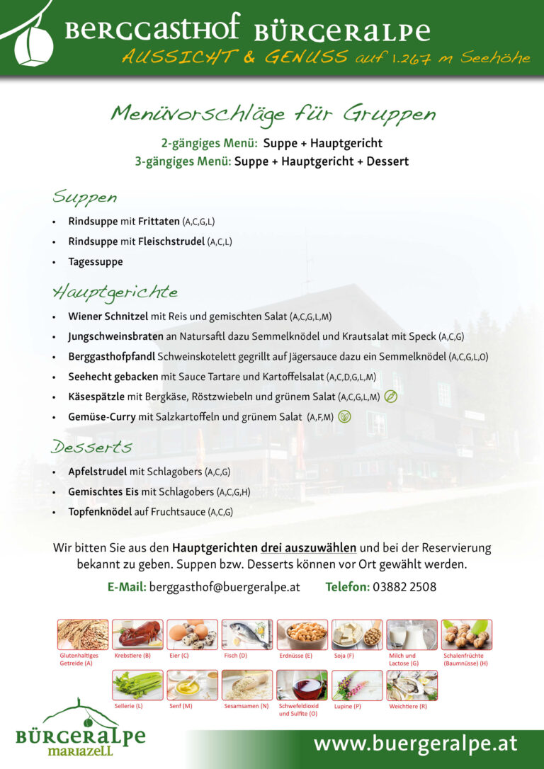 • 2-gängiges Menü im Berggasthof Bürgeralpe